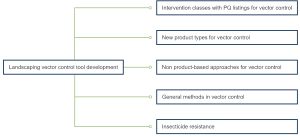 Image of ‘Intervention classes with PQ listings for vector control’ subpage, accessed via the Methods Landscaping interactive main page.